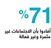 إضفاء جو من المرح والسخرية في الاجتماعات هو موضوع تناولته رسوم ديلبرت الكرتونية، إذ يمكننا جميعاً أن نُلقي نكاتاً عن مدى كون تلك الرسوم مزعجة جداً ومؤلمة. لكن هذا الألم له عواقب حقيقية بالنسبة لفرَق العمل وللمؤسسات أيضاً. في مقابلاتنا مع مئات المدراء التنفيذيين، في مجالات تتراوح ما بين التقنية المتقدمة وتجارة التجزئة، والمستحضرات الدوائية والاستشارات، صرح كثيرٌ منهم بأنهم يشعرون بالقهر بسبب اجتماعاتهم، سواء أكانت رسمية أو غير رسمية، تقليدية أو ذكية، وجهاً لوجه أو عبر وسيط إلكتروني. إذ قال أحدهم: "لا أستطيع أن أجد لي متنفساً لأستريح خلال الأسبوع". ووصفت مديرة كيف أنها وخزت نفسها بقلم رصاص كي تمنع نفسها من الصراخ خلال أحد الاجتماعات مع الموظفين. تلك الشكاوى تؤيدها أبحاث تبين أن الاجتماعات ازدادت طولاً وتواتراً على مدى السنوات الخمسين الماضية، لدرجة أن المدراء التنفيذيين يقضون فيها ما متوسطه 23 ساعة تقريباً أسبوعياً، بعد أن كان المتوسط أقل من 10 ساعات في الستينيات. وهذا لا يشمل كل التجمعات العشوائية التي لا يتم إدراجها في جدول الأعمال.
