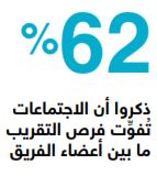 وتنعكس تبعات ذلك على الإحساس بالسعادة في العمل أيضاً. فقد أظهرت دراسة كتبها ستيفن روغلبرغ (Steven Rogelberg) وزملاؤه، من جامعة نورث كارولينا، أن مدى شعور الموظفين بفعالية الاجتماعات يرتبط بالحالة العامة بالرضا أو عدم الرضا عن وظائفهم، حتى بعد استيعاب السمات الشخصية والعوامل البيئية، كتخطيط العمل والإشراف والأجر. فبدلاً من أن تحسِّن الاجتماعات التواصل والتعاون، وهو المقصود منها، فإن تلك الأشياء تقوّضها الاجتماعات السيئة. وهنا تأمَّل حالة المدير التنفيذي الذي وُخز ساقه بقلم رصاص. هل اجتماع الموظفين ذاك يؤدي إلى تقدم فريق العمل أم إلى تخلفه؟ إنّ القليل من التجارب الإيجابية في الأسبوع لا يمكنه التعويض عن الكثير من التجارب المضنية وغير المثمرة.