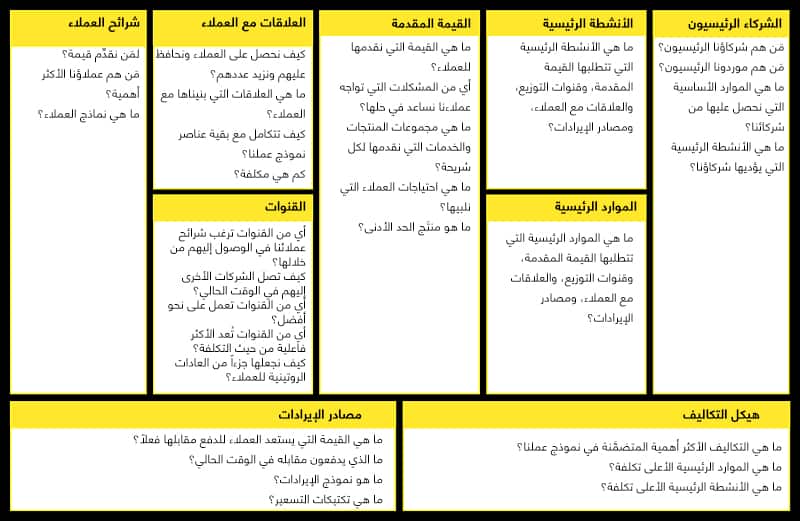 المصدر: www.businessmodelgeneration.com/canvas. صاغ مفهوم المخطط كل من ألكسندر أوسترولدر وإيف بينيور.