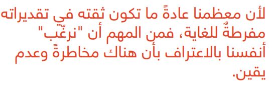 لأن معظمنا عادةً ما تكون ثقته في تقديراته مفرطةٌ للغاية، فمن المهم أن "نرغّب" أنفسنا بالاعتراف بأن هناك مخاطرةً وعدم يقين.