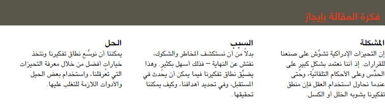 ولذلك فإننا نُقدم استراتيجياتٍ للتغلب على التحيُّز مستقاةً من أحدث الأبحاث في سيكولوجيا الحكم وصنع القرار.